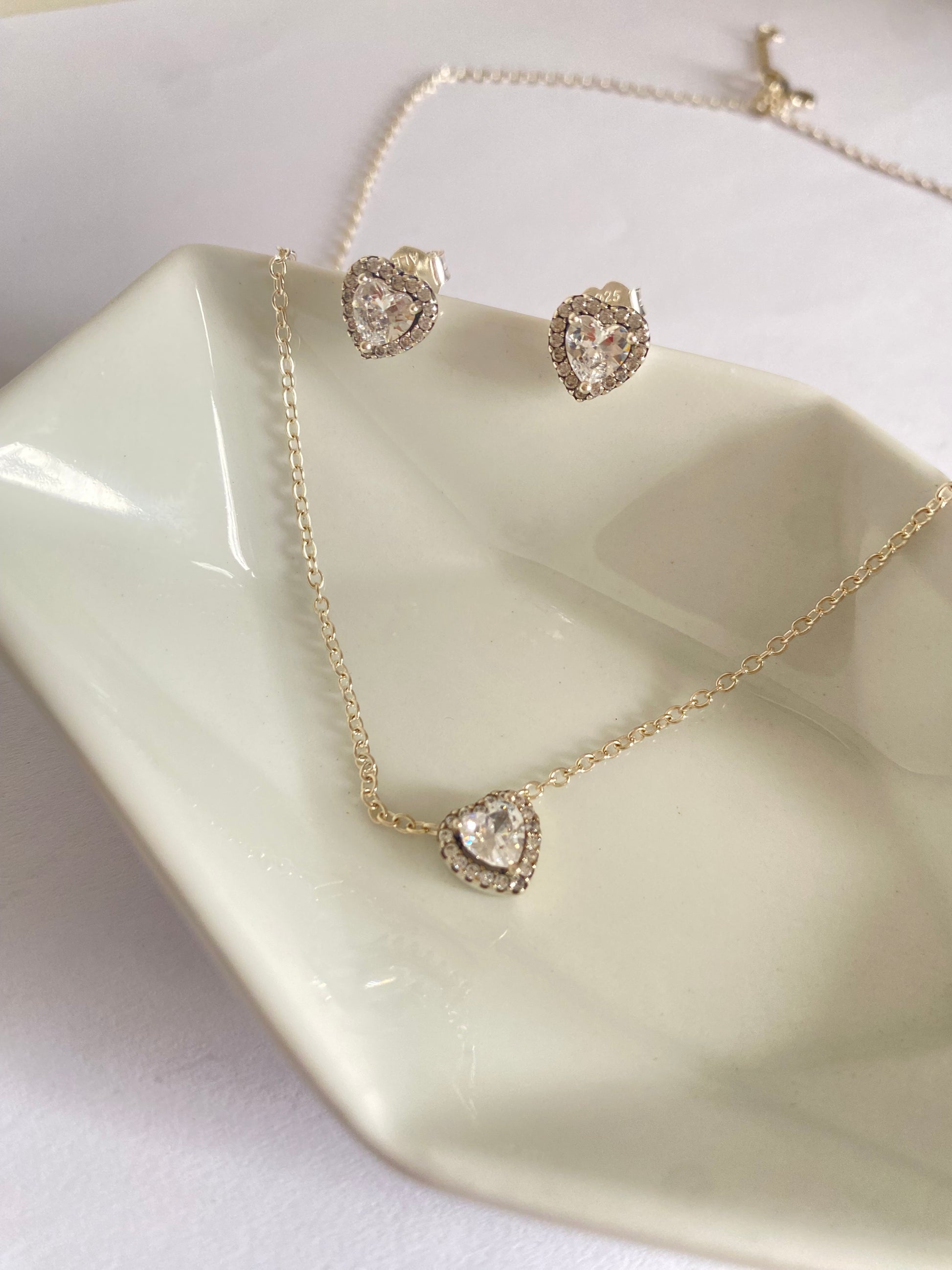 Set aretes y collar corazón blanco